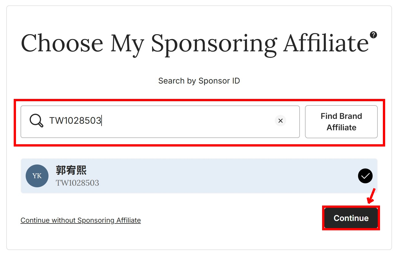 Sponsoring Brand Affiliate ID: